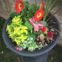 My neighbor, who has a beautiful garden, gave me some Columbine that I have planted. I did use Gerber daisies for much of my colour for this year . I have a few pictures of the gardens so you can hopefully see what I am trying to achieve. I am using perennial grasses in the tall pots that I use to hide the A/C unit, they are not mature yet, but should cover it properly next year. One thing for sure, if you take the time to make your own planters the cost is very reasonable. You need to research what takes full sun, and can survive together. I think I did this ok, time will tell. Great find looking for plants, a Tamarix bush, actually ended up with 2.